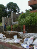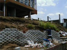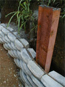 "Standard” (groove less) LocBLocs laid until Fourth layer ( 40 cm), Non-Standard LocBlocs (locBlocs with a 4cm wide by 4 cm deep groove on the top made specially for this project) on the Fifth layer. The Non –Standard LocBLocs with the grooves appear again on the Tenth Layer.